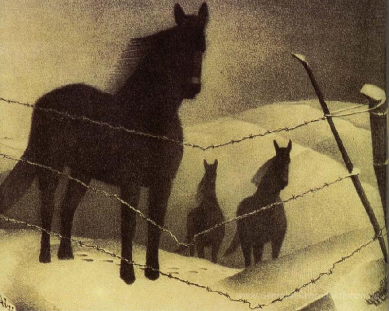 Wir bieten Ihnen eine handgefertigte Reproduktion auf Leinwand des berühmten Kunstwerks 'Februar' von Grant Wood, aus dem Reproduktionsmuseum.