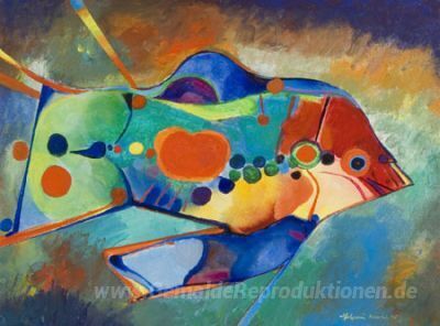Wir bieten Ihnen eine handgefertigte Reproduktion auf Leinwand des berühmten Kunstwerks 'Fisch' von Aldemir Martins, aus dem Reproduktionsmuseum.