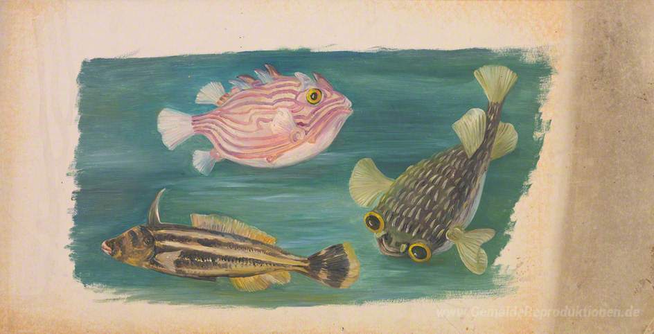 Wir bieten Ihnen eine handgefertigte Reproduktion auf Leinwand des berühmten Kunstwerks 'Fishes' von Marianne North, aus dem Reproduktionsmuseum.