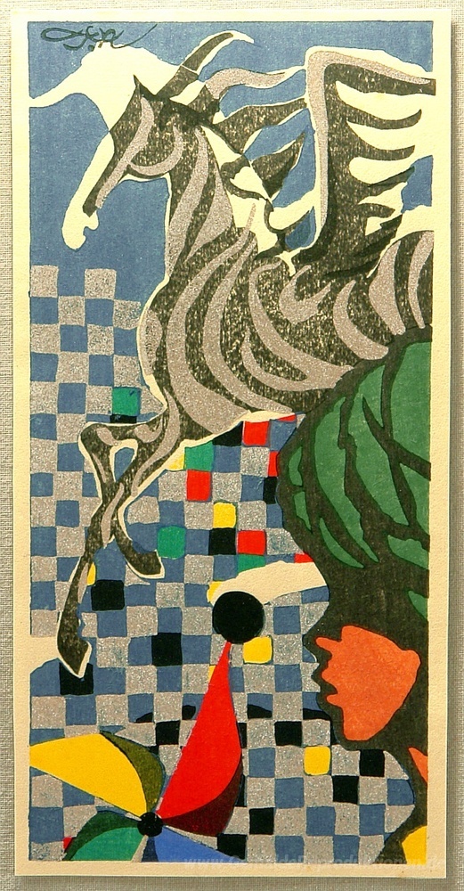 Wir bieten Ihnen eine handgefertigte Reproduktion auf Leinwand des berühmten Kunstwerks 'Fliegen-Pferd' von Tadashi Nakayama, aus dem Reproduktionsmuseum.