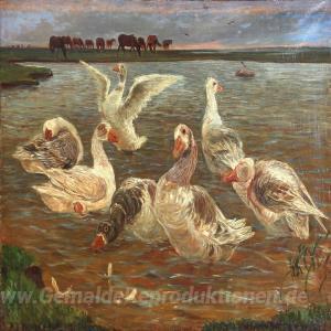 Wir bieten Ihnen eine handgefertigte Reproduktion auf Leinwand des berühmten Kunstwerks 'Gaes' von Theodor Philipsen, aus dem Reproduktionsmuseum.