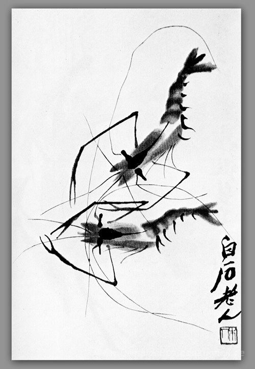 Wir bieten Ihnen eine handgefertigte Reproduktion auf Leinwand des berühmten Kunstwerks 'Garnele' von Qi Baishi, aus dem Reproduktionsmuseum.