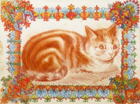 Wir bieten Ihnen eine handgefertigte Reproduktion auf Leinwand des berühmten Kunstwerks 'GINGER CAT in der Dekoration' von Louis Wain, aus dem Reproduktionsmuseum.
