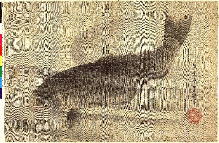 Wir bieten Ihnen eine handgefertigte Reproduktion auf Leinwand des berühmten Kunstwerks 'Grau-Karpfen im Wasser' von Utagawa Toyokuni II, aus dem Reproduktionsmuseum.