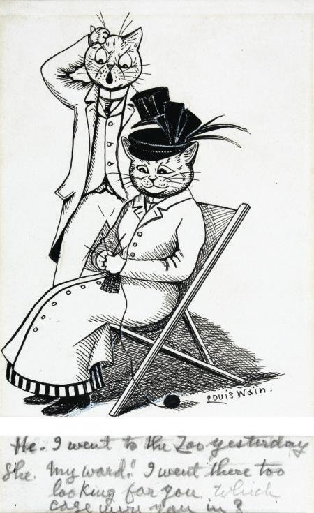 Wir bieten Ihnen eine handgefertigte Reproduktion auf Leinwand des berühmten Kunstwerks 'HE - Ich ging zu den ZOO Gestern hat sie - MEIN WORT! Ich ging d' von Louis Wain, aus dem Reproduktionsmuseum.