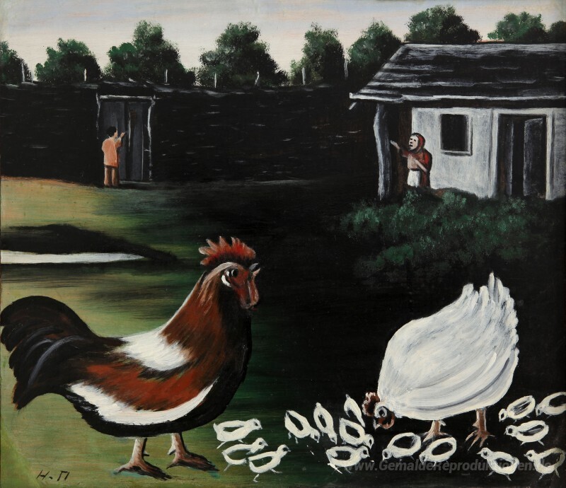Willkommen in unserer exquisiten Kollektion von Ölgemälden, die sorgfältig ausgewählt wurden, um Ihrem Raum eine besondere Atmosphäre zu verleihen. Eines unserer herausragenden Stücke ist Henne mit ihren Küken von dem legendären Künstler Niko Pirosmani. Pirosmani, bekannt für seinen einzigartigen Stil, fängt in seinen Werken die Essenz des Lebens und die Schönheit der Natur in leuchtenden Farben und detaillierten Texturen ein.
