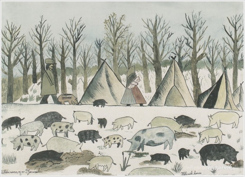 Wir bieten Ihnen eine handgefertigte Reproduktion auf Leinwand des berühmten Kunstwerks 'Hlebine Schweinehirt' von Ivan Generalic, aus dem Reproduktionsmuseum.