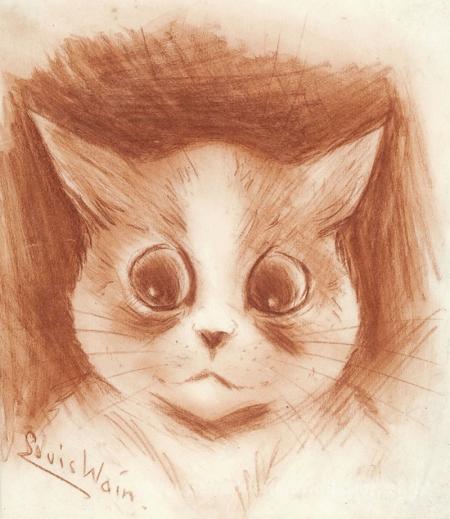 Wir bieten Ihnen eine handgefertigte Reproduktion auf Leinwand des berühmten Kunstwerks 'ICH WUNDERE MICH' von Louis Wain, aus dem Reproduktionsmuseum.