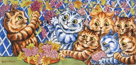 Wir bieten Ihnen eine handgefertigte Reproduktion auf Leinwand des berühmten Kunstwerks 'IM WEINBERG' von Louis Wain, aus dem Reproduktionsmuseum.
