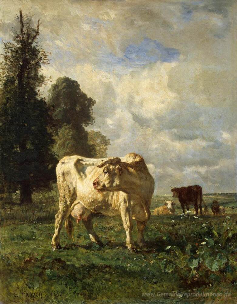 Willkommen in unserer erlesenen Auswahl an Ölgemälden, wo Kunst und Emotionen auf einzigartige Weise verschmelzen. Jedes Kunstwerk, darunter Kühe auf dem Gebiet des renommierten Künstlers Constant Troyon, erzählt eine eigene Geschichte und bringt Leidenschaft in Ihre vier Wände. Constant Troyon, ein Meister des Barbizanismus, versteht es, mit feinen Pinselstrichen die Schönheit der Natur und der Tierwelt einzufangen.