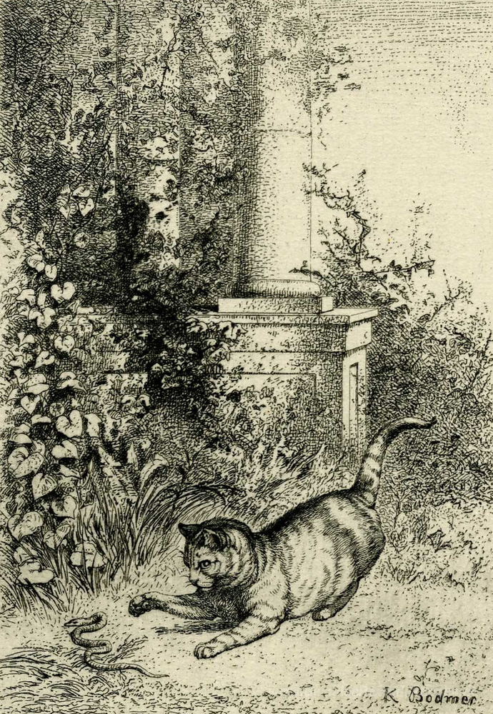 Wir bieten Ihnen eine handgefertigte Reproduktion auf Leinwand des berühmten Kunstwerks 'Katze, die mit einem Addierer' von Karl Bodmer, aus dem Reproduktionsmuseum.