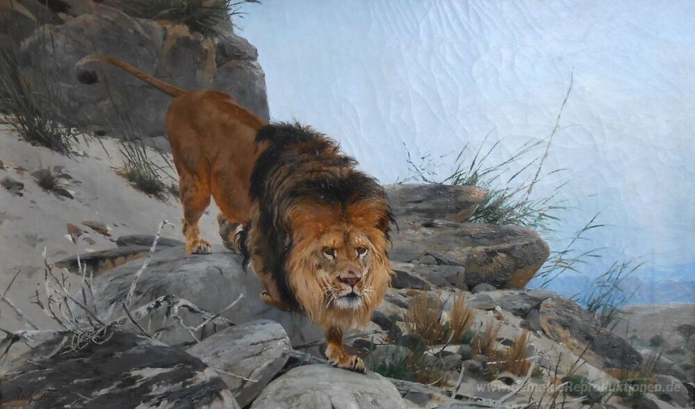 Wir bieten Ihnen eine handgefertigte Reproduktion auf Leinwand des berühmten Kunstwerks 'Löwe' von Richard Friese, aus dem Reproduktionsmuseum.