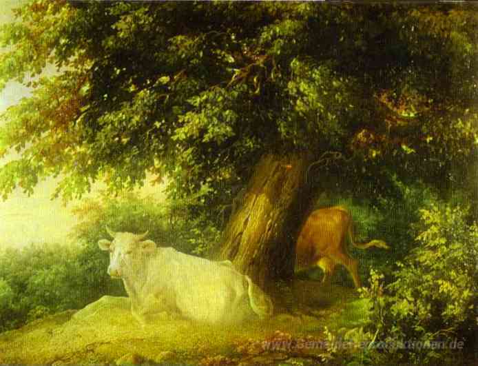 Wir bieten Ihnen eine handgefertigte Reproduktion auf Leinwand des berühmten Kunstwerks 'Landschaft mit Kühen' von Mikhail Lebedev, aus dem Reproduktionsmuseum.