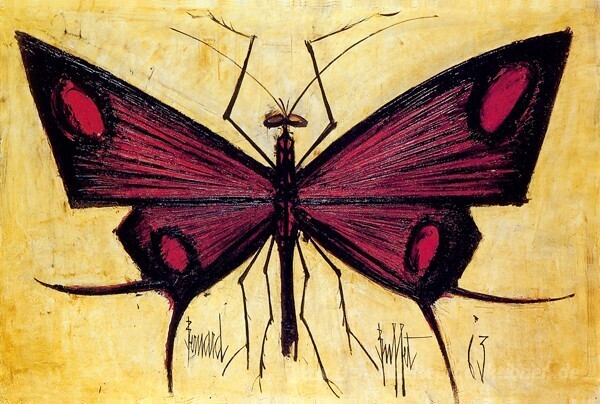Wir bieten Ihnen eine handgefertigte Reproduktion auf Leinwand des berühmten Kunstwerks 'Le Museum: Le papillon rouge' von Bernard Buffet, aus dem Reproduktionsmuseum.