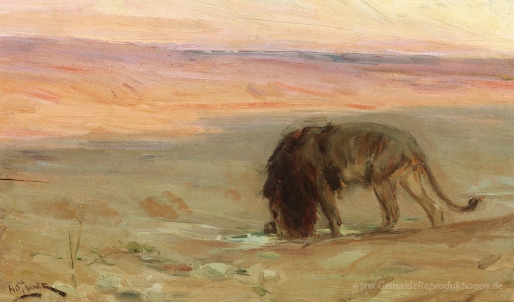 Wir bieten Ihnen eine handgefertigte Reproduktion auf Leinwand des berühmten Kunstwerks 'Lion Trinken' von Henry Ossawa Tanner, aus dem Reproduktionsmuseum.