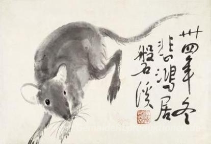 Wir bieten Ihnen eine handgefertigte Reproduktion auf Leinwand des berühmten Kunstwerks 'Maus' von Xu Beihong, aus dem Reproduktionsmuseum.