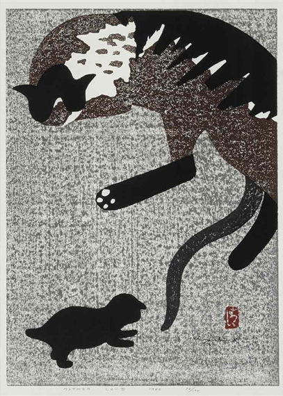 Wir bieten Ihnen eine handgefertigte Reproduktion auf Leinwand des berühmten Kunstwerks 'Mutterliebe' von Kiyoshi Saito, aus dem Reproduktionsmuseum.