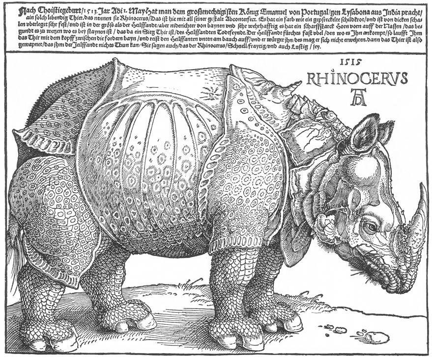 Wir bieten Ihnen eine handgefertigte Reproduktion auf Leinwand des berühmten Kunstwerks 'Nashorn' von Albrecht Durer, aus dem Reproduktionsmuseum.