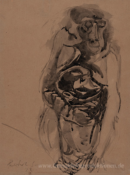 Wir bieten Ihnen eine handgefertigte Reproduktion auf Leinwand des berühmten Kunstwerks 'Ohne Titel' von Paritosh Sen, aus dem Reproduktionsmuseum.