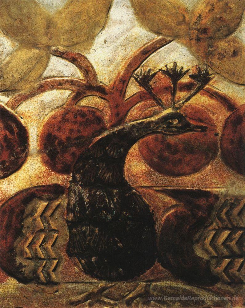 Die Verwendung von Öl als Medium ermöglicht es Vrubel, feine Details und subtile Nuancen zu erzeugen, die das Gemälde lebendig erscheinen lassen. Die kraftvolle Präsenz des Pfaus, kombiniert mit der einzigartigen Handschrift des Künstlers, zieht den Betrachter in seinen Bann. Ein solches Kunstwerk ist mehr als nur eine Dekoration; es ist ein statement piece, das jeden Raum aufwertet und ihm eine unverwechselbare Note verleiht.