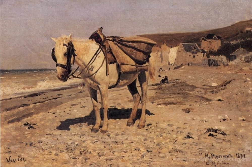 Wir bieten Ihnen eine handgefertigte Reproduktion auf Leinwand des berühmten Kunstwerks 'Pferd für die Steine zu sammeln in der Vela' von Ilya Repin, aus dem Reproduktionsmuseum.