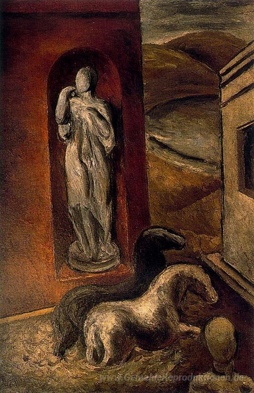 Wir bieten Ihnen eine handgefertigte Reproduktion auf Leinwand des berühmten Kunstwerks 'Pferde durch das Wasser' von Arturo Souto, aus dem Reproduktionsmuseum.