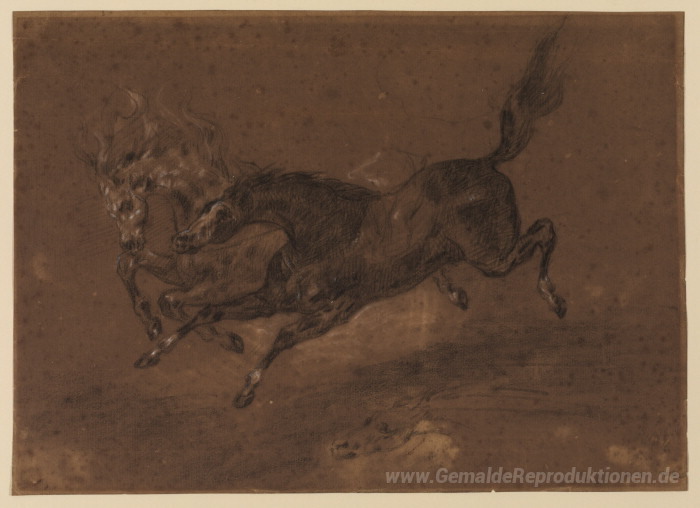 Wir bieten Ihnen eine handgefertigte Reproduktion auf Leinwand des berühmten Kunstwerks 'Pferde laufen' von Eugene Delacroix, aus dem Reproduktionsmuseum.