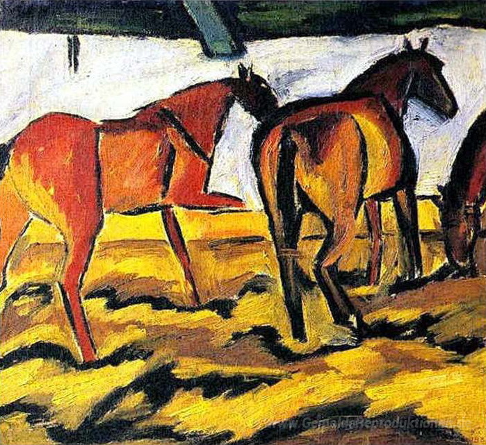 Wir bieten Ihnen eine handgefertigte Reproduktion auf Leinwand des berühmten Kunstwerks 'Pferde' von David Burliuk, aus dem Reproduktionsmuseum.
