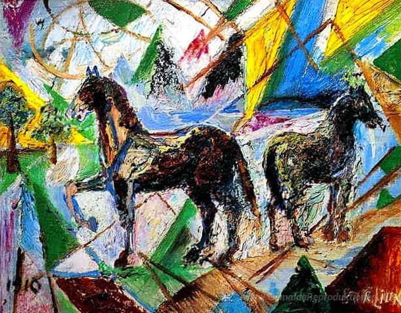 Wir bieten Ihnen eine handgefertigte Reproduktion auf Leinwand des berühmten Kunstwerks 'Pferde' von David Burliuk, aus dem Reproduktionsmuseum.
