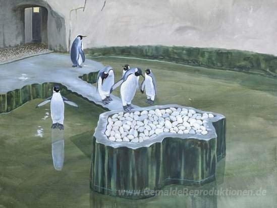 Wir bieten Ihnen eine handgefertigte Reproduktion auf Leinwand des berühmten Kunstwerks 'Pinguins' von Gilles Aillaud, aus dem Reproduktionsmuseum.