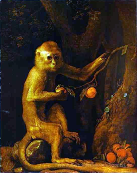 Wir bieten Ihnen eine handgefertigte Reproduktion auf Leinwand des berühmten Kunstwerks 'Porträt eines Affen' von George Stubbs, aus dem Reproduktionsmuseum.