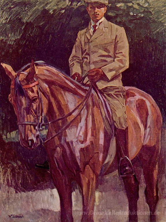 Wir bieten Ihnen eine handgefertigte Reproduktion auf Leinwand des berühmten Kunstwerks 'Reiterporträt' von Wilhelm Trubner, aus dem Reproduktionsmuseum.