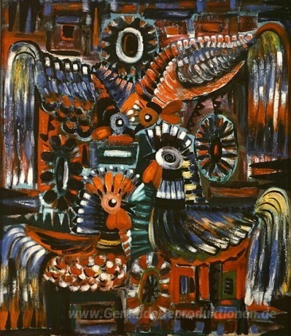 Wir bieten Ihnen eine handgefertigte Reproduktion auf Leinwand des berühmten Kunstwerks 'Roosters' von Radi Nedelchev, aus dem Reproduktionsmuseum.