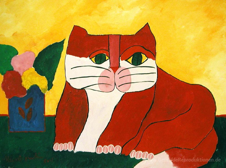 Wir bieten Ihnen eine handgefertigte Reproduktion auf Leinwand des berühmten Kunstwerks 'Rote Katze und Vase mit Blumen' von Aldemir Martins, aus dem Reproduktionsmuseum.