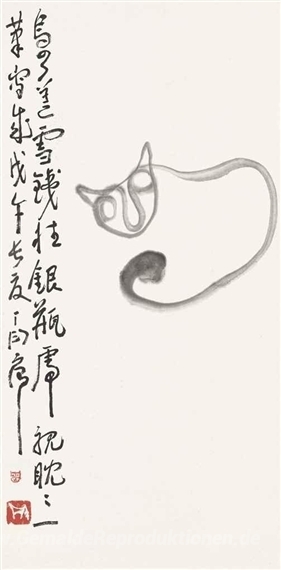 Wir bieten Ihnen eine handgefertigte Reproduktion auf Leinwand des berühmten Kunstwerks 'Schlafende Katze' von Ding Yanyong, aus dem Reproduktionsmuseum.