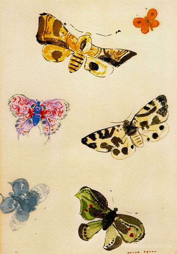 Wir bieten Ihnen eine handgefertigte Reproduktion auf Leinwand des berühmten Kunstwerks 'Schmetterlinge' von Odilon Redon, aus dem Reproduktionsmuseum.