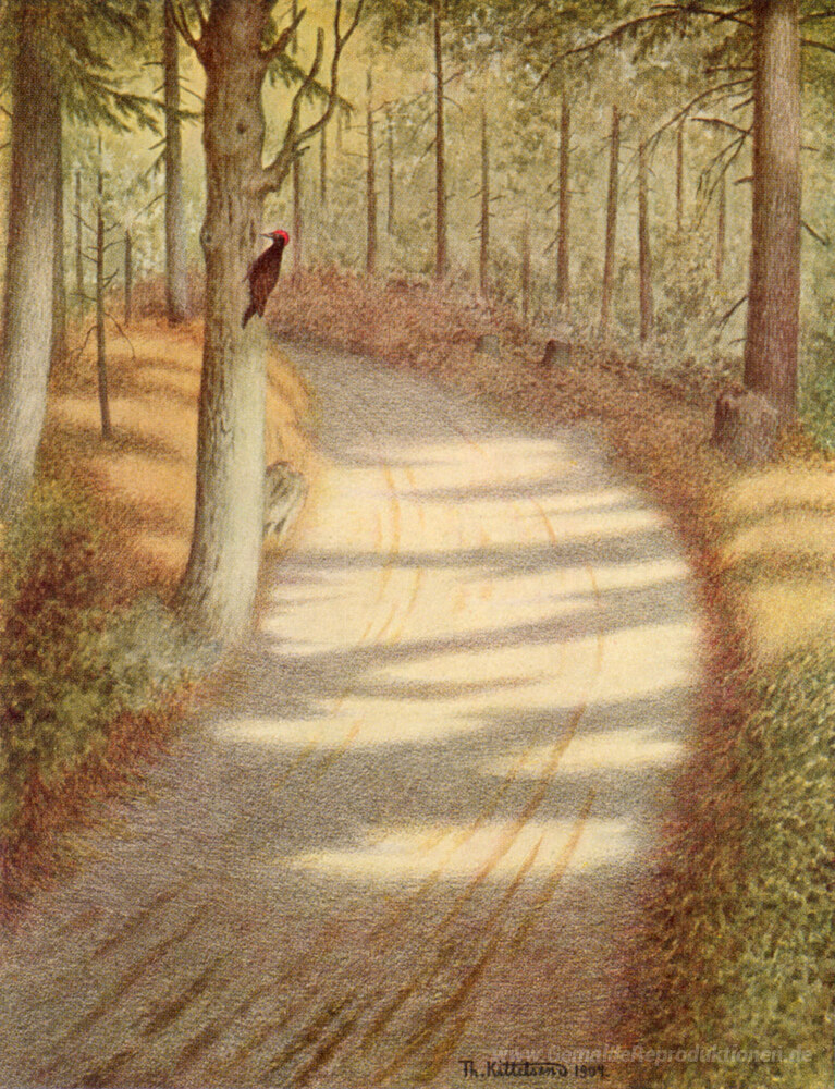 Wir bieten Ihnen eine handgefertigte Reproduktion auf Leinwand des berühmten Kunstwerks 'Specht' von Theodor Severin Kittelsen, aus dem Reproduktionsmuseum.