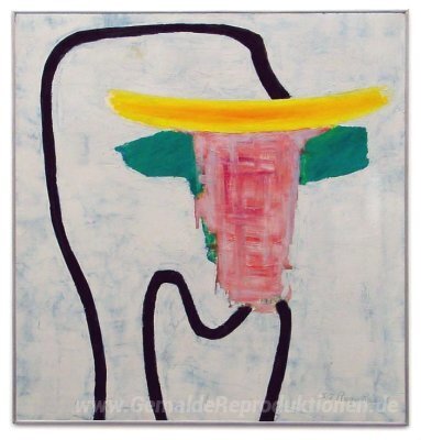 Wir bieten Ihnen eine handgefertigte Reproduktion auf Leinwand des berühmten Kunstwerks 'Stier' von Roger Raveel, aus dem Reproduktionsmuseum.