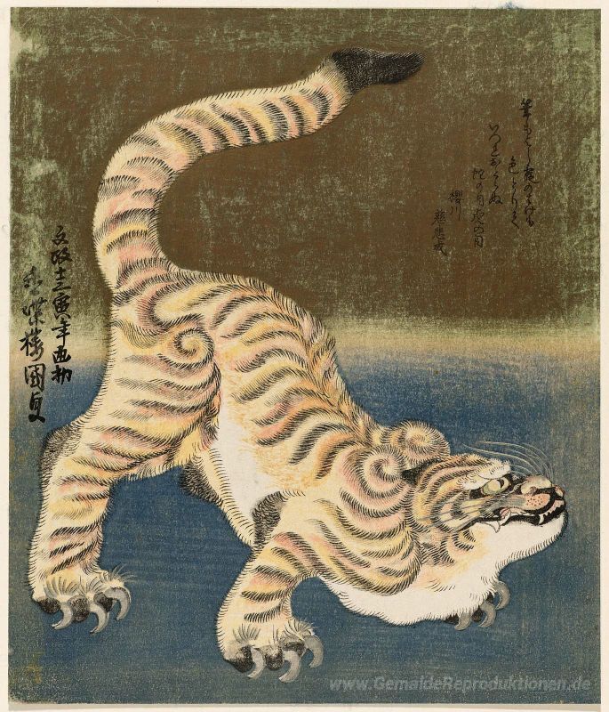 Wir bieten Ihnen eine handgefertigte Reproduktion auf Leinwand des berühmten Kunstwerks 'Tiger' von Utagawa Kunisada, aus dem Reproduktionsmuseum.