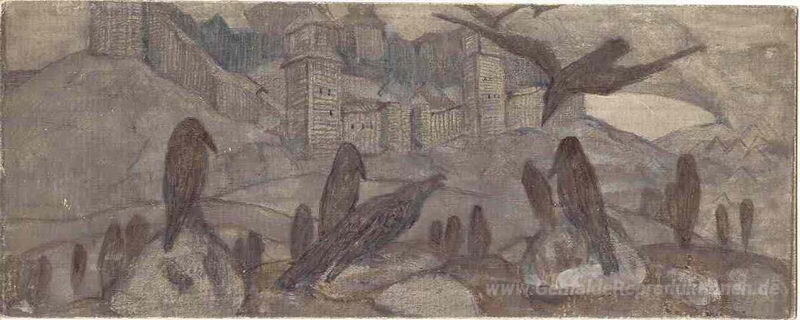 Wir bieten Ihnen eine handgefertigte Reproduktion auf Leinwand des berühmten Kunstwerks 'Unheilschwanger' von Nicholas Roerich, aus dem Reproduktionsmuseum.