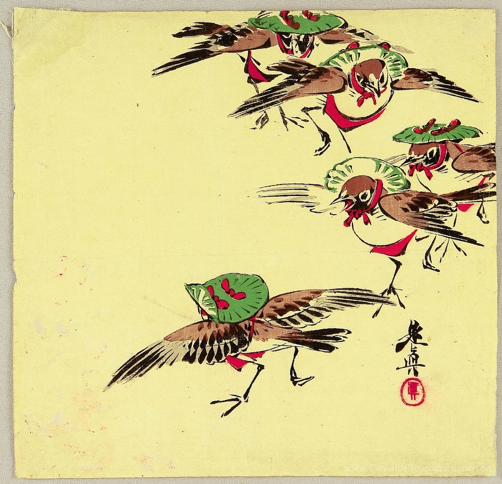Wir bieten Ihnen eine handgefertigte Reproduktion auf Leinwand des berühmten Kunstwerks 'Vögel im Festival' von Shibata Zeshin, aus dem Reproduktionsmuseum.