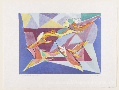 Wir bieten Ihnen eine handgefertigte Reproduktion auf Leinwand des berühmten Kunstwerks 'Vögel im Flug' von Jacques Villon, aus dem Reproduktionsmuseum.