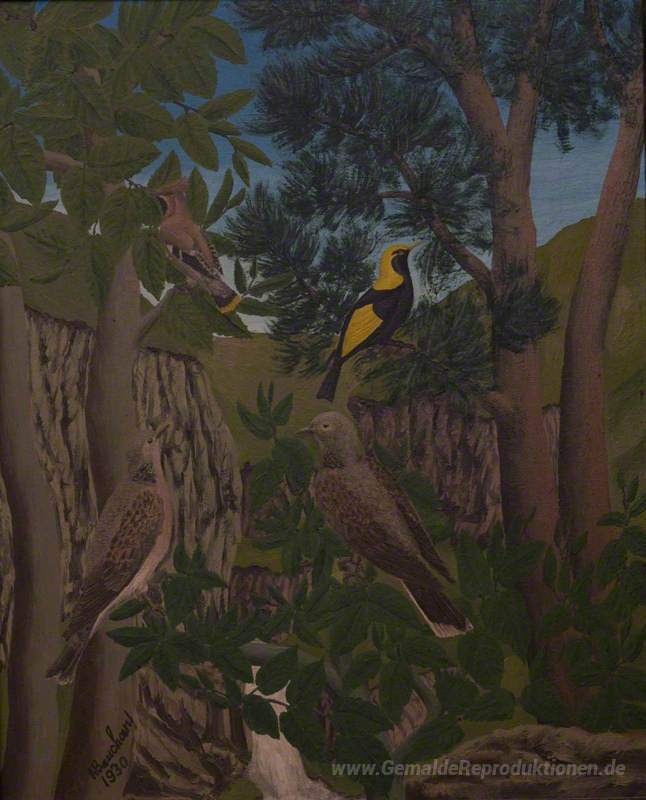 Wir bieten Ihnen eine handgefertigte Reproduktion auf Leinwand des berühmten Kunstwerks 'Vögel in einem Gorge' von Andre Bauchant, aus dem Reproduktionsmuseum.
