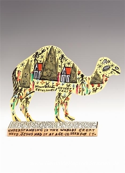 Wir bieten Ihnen eine handgefertigte Reproduktion auf Leinwand des berühmten Kunstwerks 'Wüsten-Taxi' von Howard Finster, aus dem Reproduktionsmuseum.