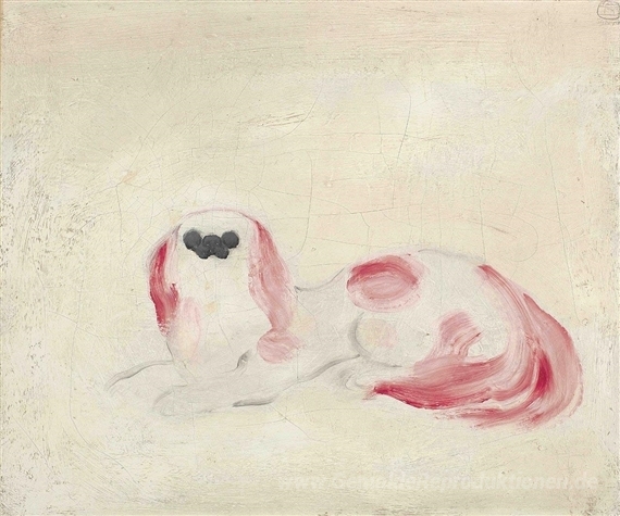 Wir bieten Ihnen eine handgefertigte Reproduktion auf Leinwand des berühmten Kunstwerks 'Weiß Pekinese' von Sanyu, aus dem Reproduktionsmuseum.
