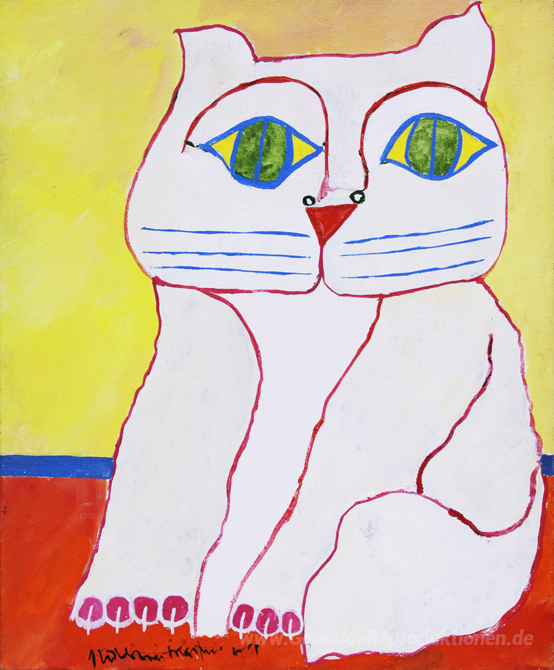 Wir bieten Ihnen eine handgefertigte Reproduktion auf Leinwand des berühmten Kunstwerks 'Weiße Katze' von Aldemir Martins, aus dem Reproduktionsmuseum.