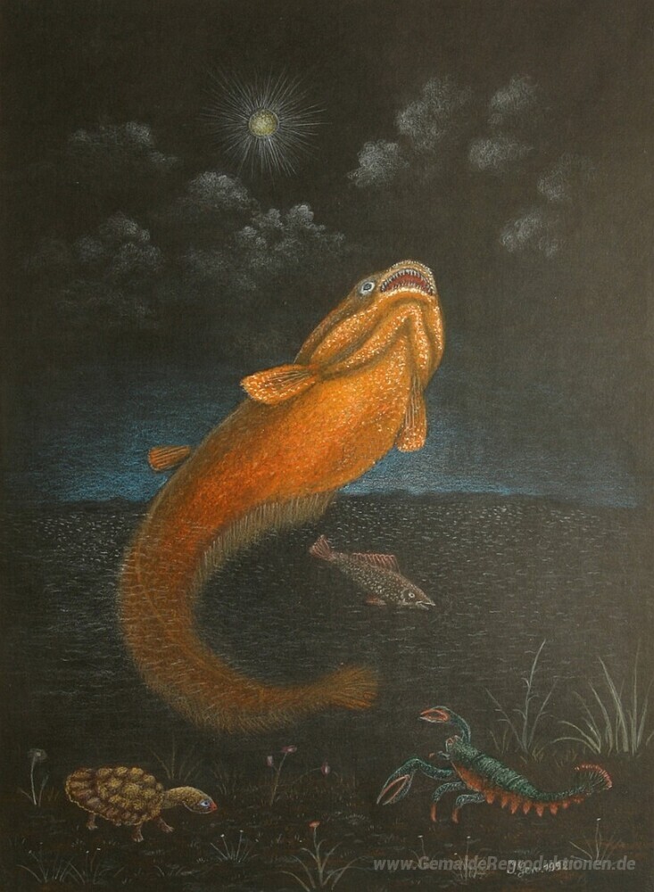 Wir bieten Ihnen eine handgefertigte Reproduktion auf Leinwand des berühmten Kunstwerks 'Wels' von Ivan Generalic, aus dem Reproduktionsmuseum.