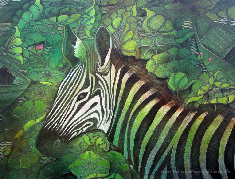 Wir bieten Ihnen eine handgefertigte Reproduktion auf Leinwand des berühmten Kunstwerks 'Zebra in der Natur' von Jahar Dasgupta, aus dem Reproduktionsmuseum.