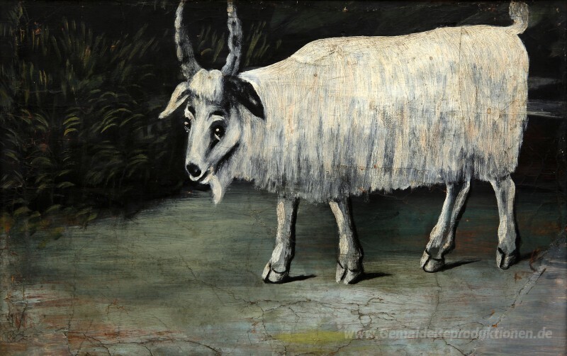 Wir bieten Ihnen eine handgefertigte Reproduktion auf Leinwand des berühmten Kunstwerks 'Ziege' von Niko Pirosmani, aus dem Reproduktionsmuseum.