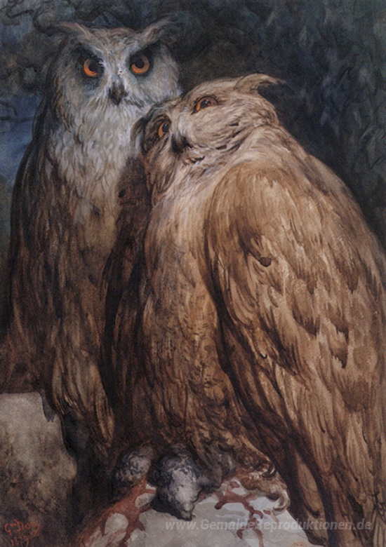 Wir bieten Ihnen eine handgefertigte Reproduktion auf Leinwand des berühmten Kunstwerks 'Zwei Eulen' von Gustave Dore, aus dem Reproduktionsmuseum.